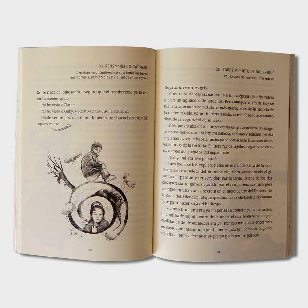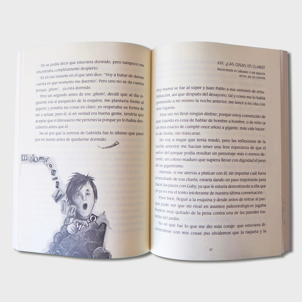 “Me llamo Javier, tengo casi once años, me gustan los juegos de computadora, las palomitas con salsa y esta misma tarde acabo de descubrir los restos de un tiranosaurio”. Así empieza Javier su diario mental en el que nos cuenta las aventuras que vive a partir de que encuentra el esqueleto de un Tiranosaurio rex. ¿Qué harías si te sucediera algo así? ¿Se lo contarías a tu familia, a tus amigos o guardarías el secreto?