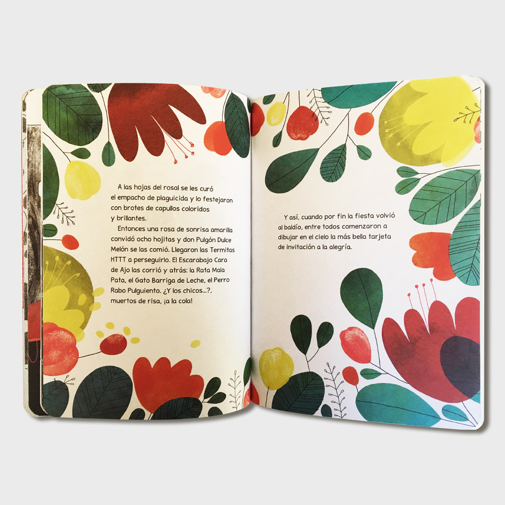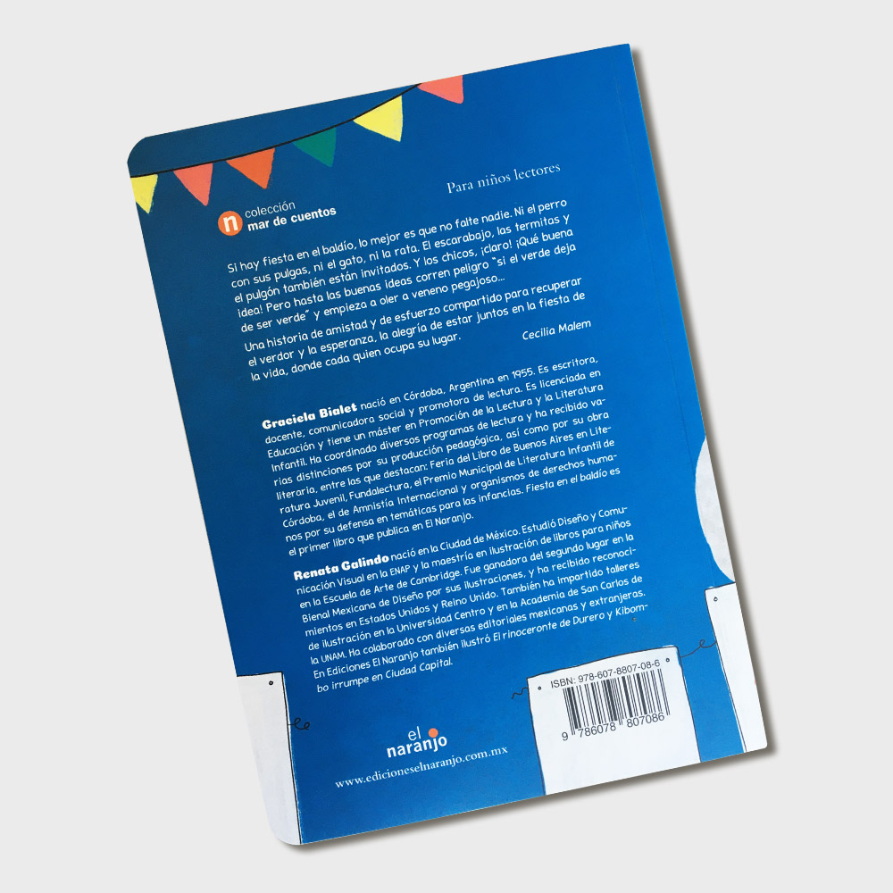 Si hay fiesta en el baldío, lo mejor es que no falte nadie. Ni el perro con sus pulgas, ni el gato, ni la rata. El escarabajo, las termitas y el pulgón también están invitados. Y los chicos, ¡claro! ¡Qué buena idea! Pero hasta las buenas ideas corren peligro “si el verde deja de ser verde” y empieza a oler a veneno pegajoso… Una historia de amistad y de esfuerzo compartido para recuperar el verdor y la esperanza, la alegría de estar juntos en la fiesta de la vida, donde cada quien ocupa su lugar.